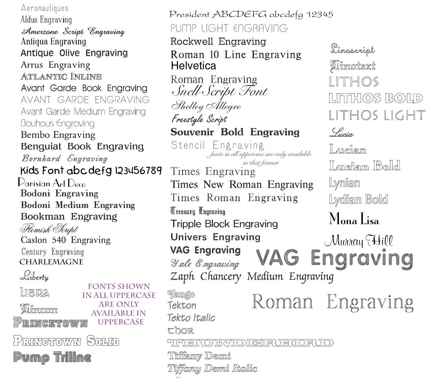 A name can be engraved on the front curved below the paw, or centered on the back, additional text and symbols can also be engraved on the back on several lines.